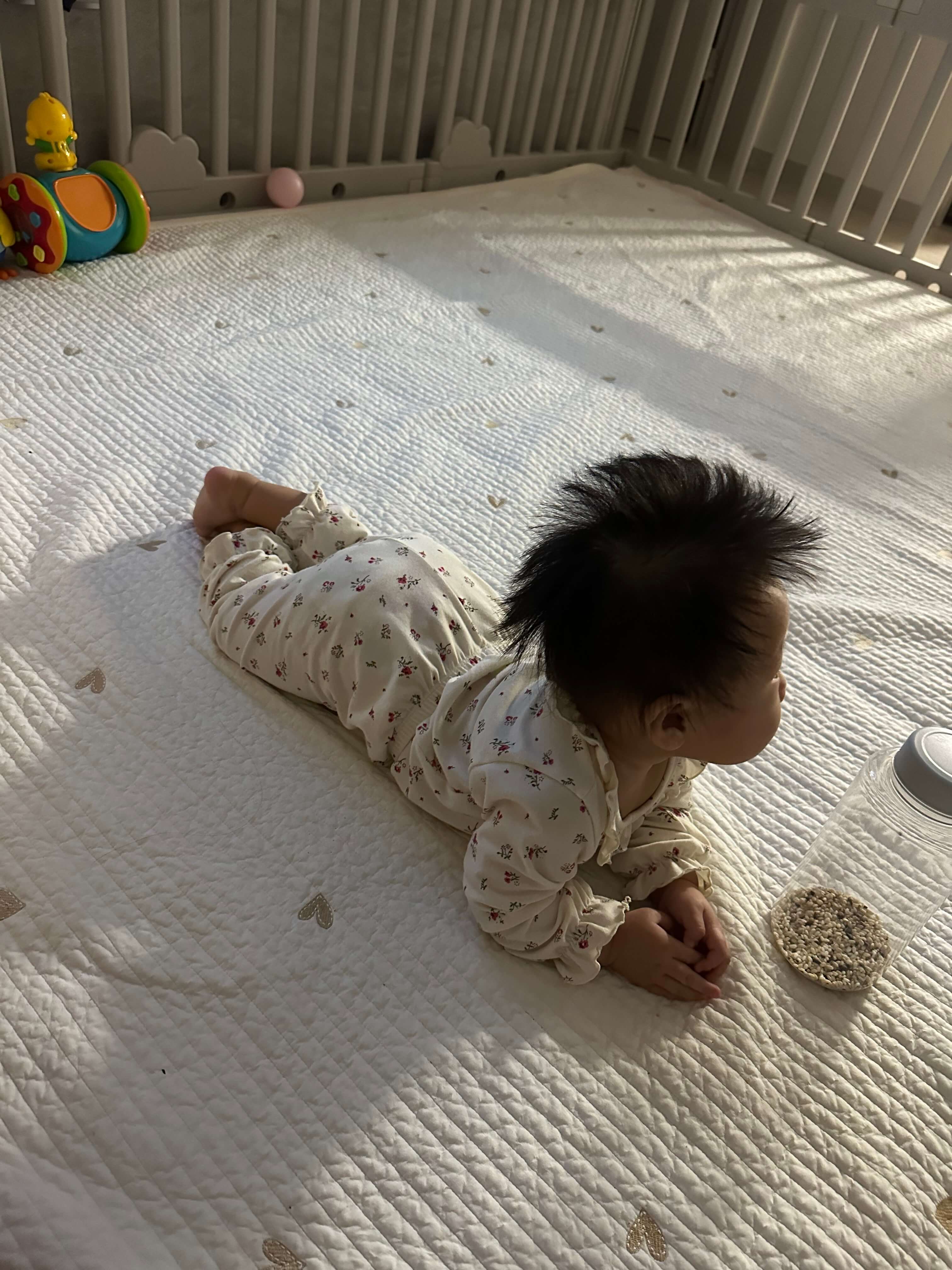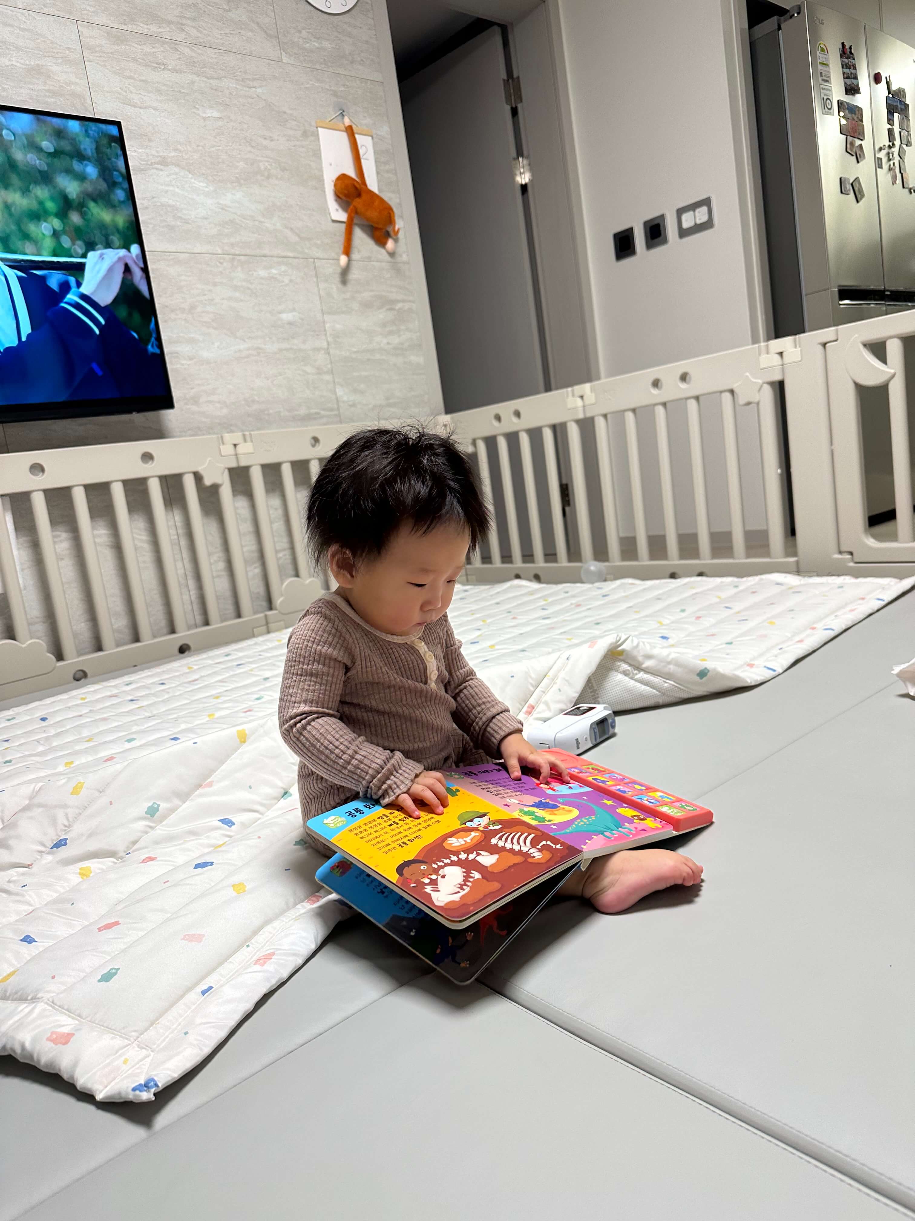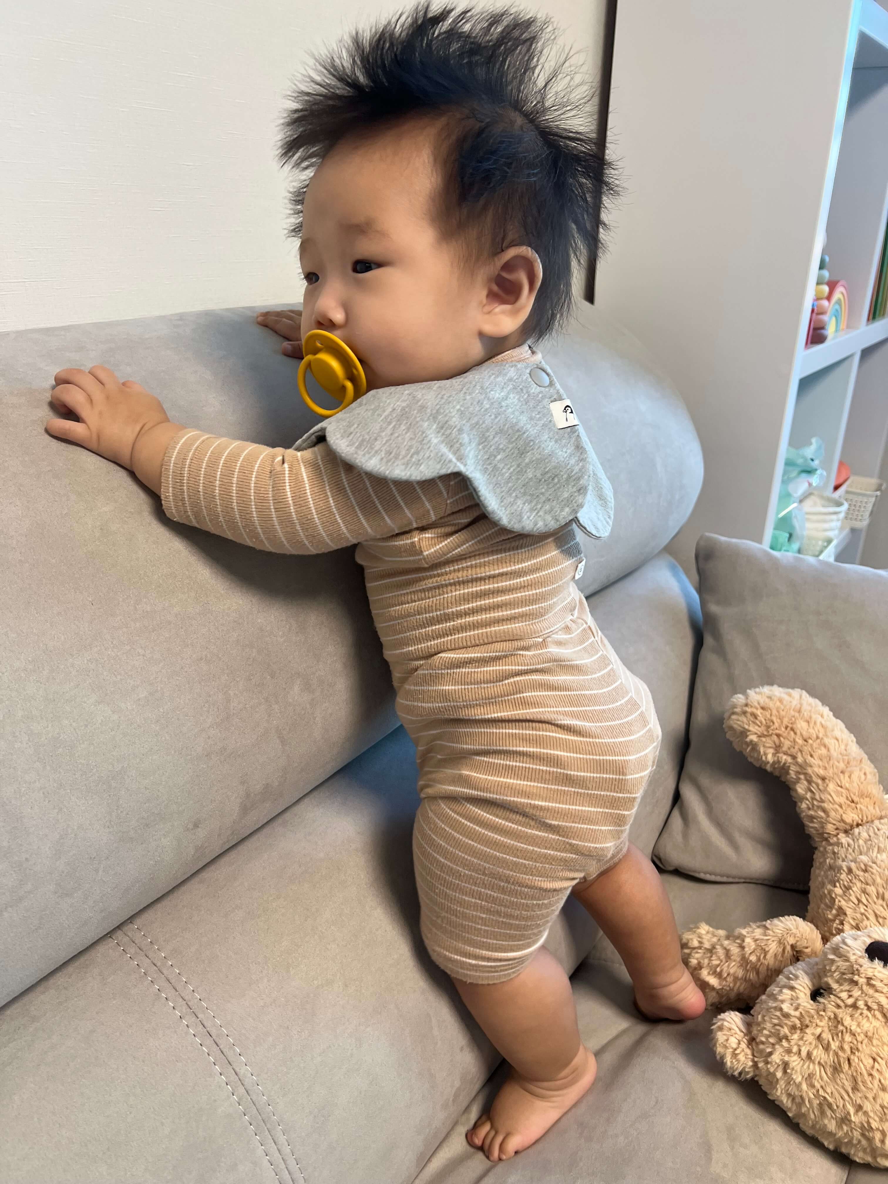 이 시기의 아기는 호기심 많습니다 스스로 자유롭게 움직이고 주변을 탐험합니다 날카로운 물건, 깨지기 쉬운 물건, 뜨거운 물건 등은 위험할 수 있으니 아기의 손이 닿지 않은 곳으로 옮겨 주세요